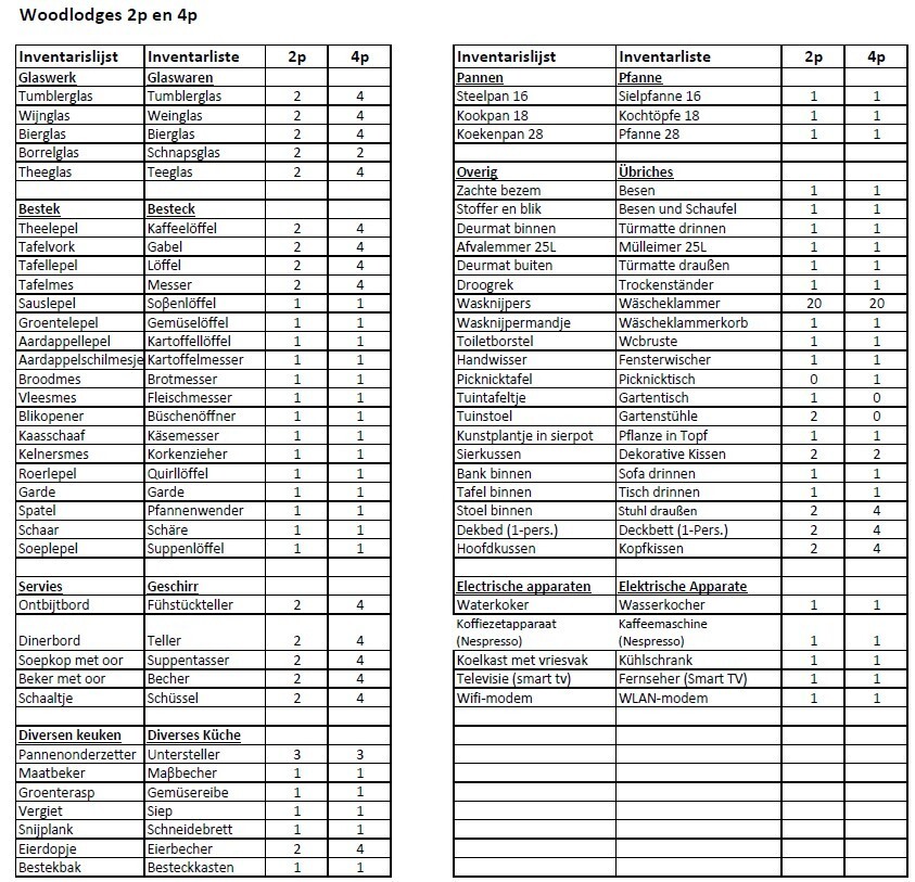 Diese Luxus Woodlodge (3 x 7 Meter) für bis zu 4 Personen verfügt über 4 Betten, ein Badezimmer, Fernseher (Smart-TV), eigenes WLAN-Modem, elektrische Heizung und eine kleine Küche mit 2 elektrischen Kochstellen. Auf der Terrasse steht ein Picknicktisch zur Verfügung.
