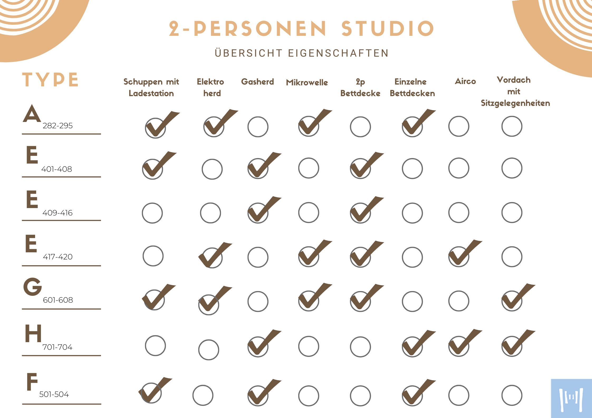 Die Studios sind für 2 Personen und ein Baby bis zu 2 Jahren geeignet und verfügen über einen eigenen Parkplatz.